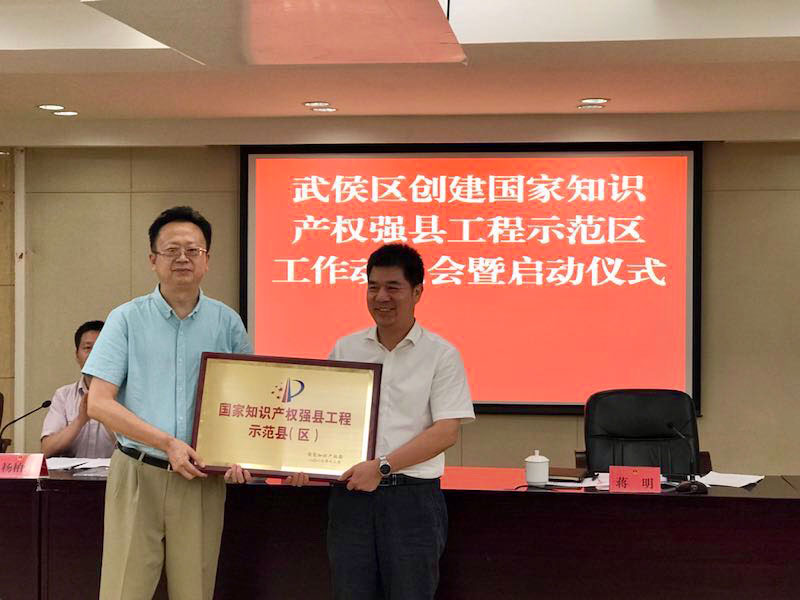 6月22日,武侯区召开国家知识产权强县工程示范区建设动员大会,区级相关部门、各街道办事处、企事业单位、高校院所、知识产权服务机构负责人参加会议。会上对建设强县工程示范区工作进行安排部署,武侯区人民政府蒋明副区长对示范区建设提出具体要求。省知识产权局杨早林副局长出席会议,代表国家知识产权局向武侯区授牌并讲话。